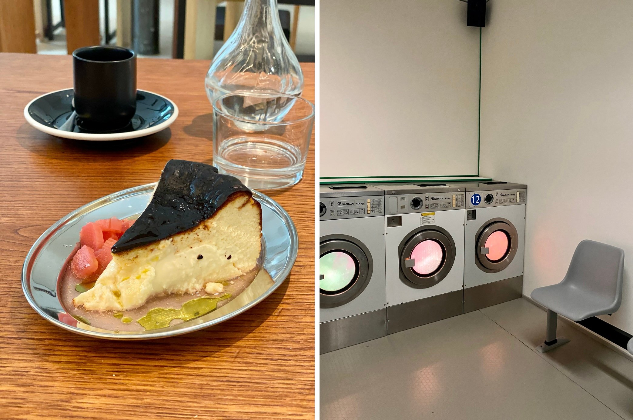 Et surtout un cheesecake basque, léger comme une plume crémeuse, assaisonnée d’un filet d’huile d’olive et de bonbons de rhubarbe. Totalement addictif.