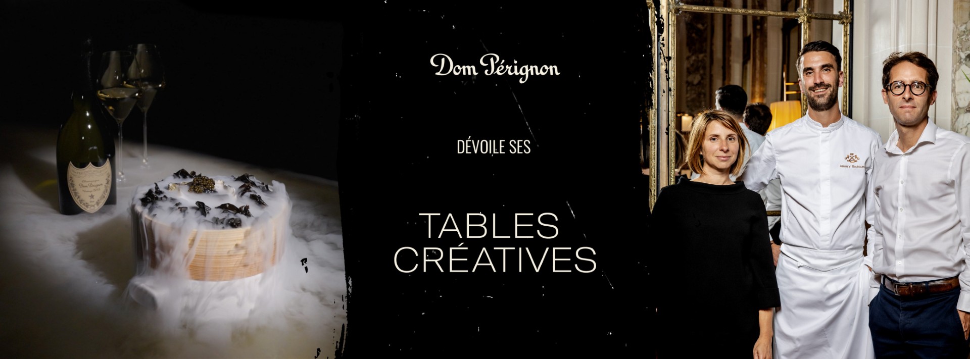 Des « Tables Créatives » conçues autour de professionnels au savoir-faire reconnu : Vincent Chaperon, Chef de caves Dom Pérignon depuis 2019, Amaury Bouhours, Chef Exécutif du restaurant doublement étoilé Le Meurice-Alain Ducasse et membre de la Dom Pérignon Society, Julie Rothhahn, designer culinaire audacieuse et renommée.