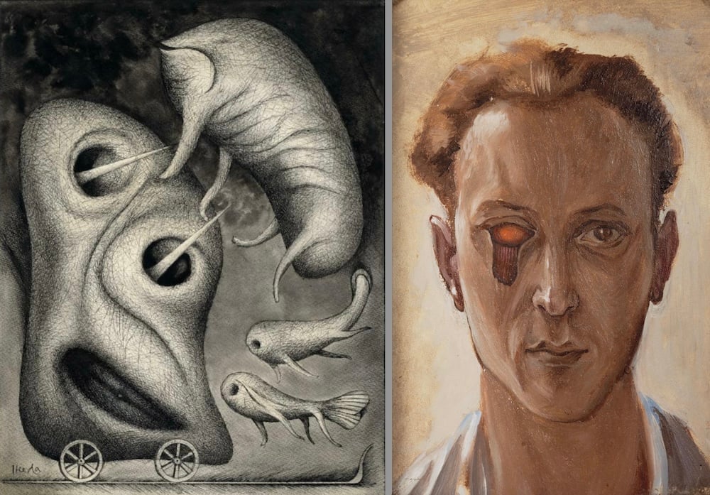 Impossible de rendre hommage à un seul artiste tant il y en a. On citera, de façon ultra personnelle, Victor Brauner et ses petits portraits (Autoportrait de 1931, et Hitler de 1934), les collages de Max Ernst, les dessins de Toyen et de Tatsuo Ikeda, les poupées de Hans Bellmer, les photos de Brassaï et de Dora Maar, les peintures de Dorothea Tanning.