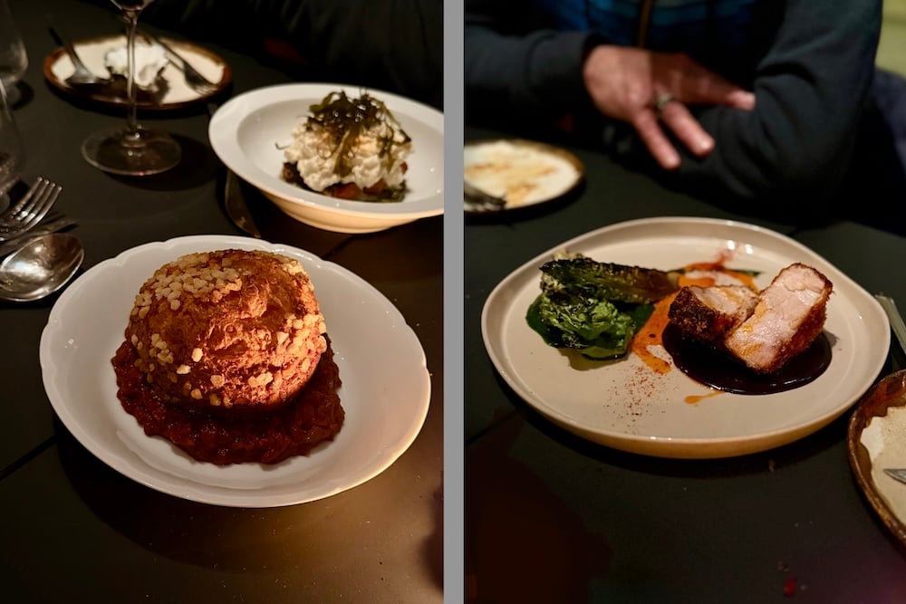 Aucune assiette ne laisse indifférent. Certains plats frisent le génie, comme cette poitrine marinée au miso rouge et cuite à basse température pendant 36 heures ; cette grosse chouquette farcie à l’œuf parfait sur lit de shakshuka ; ou encore la langue fondante, gratin de pommes de terre et harissa.