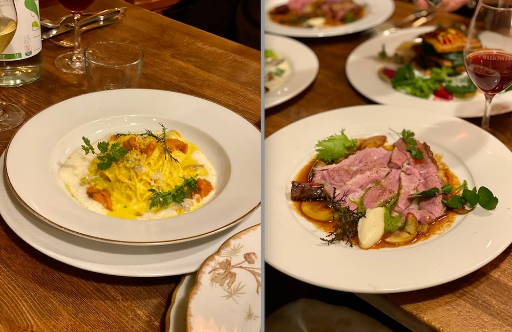 Le canard au sang et à l’orange est merveilleux, l’agneau sauce à l’oseille est d’une tendreté dingue, les Saint-Jacques, délicates. En entrée, nous avons réussi à sauvegarder l’ultime assiette de Tagliolini à l’oursin violet de Bretagne et curcuma frais, sans doute un des meilleurs plats dégustés cette année et qui mérite à lui seul le déplacement dans le 20e, nouveau repaire de la gastronomie parisienne.