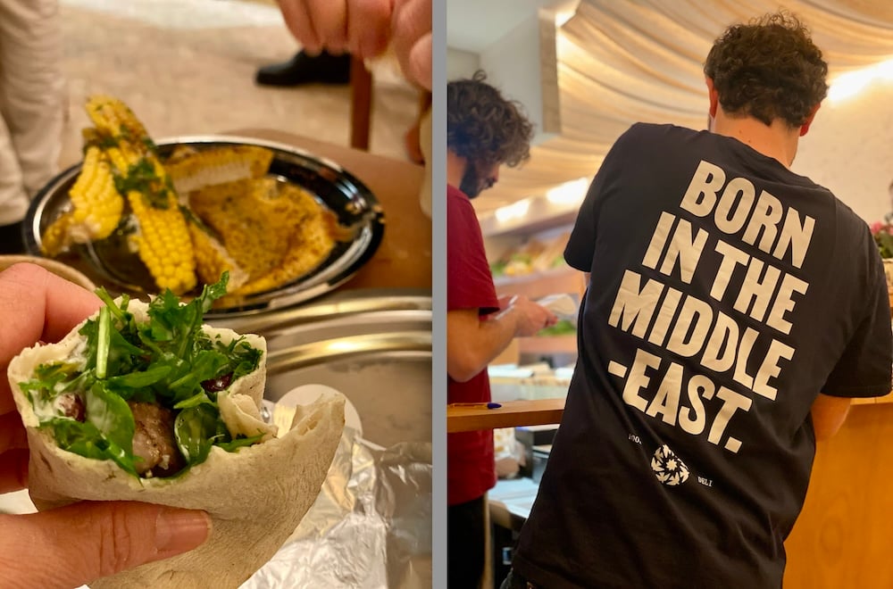 Cinq recettes pour ce sandwich kurde à la galette cuite minute : agneau, maquereau, keftas, champignons, poulet, assaisonnés dans le désordre, d’herbes fraiches, de mélasse de grenade, de tahini, d’aïoli, de cornichons, d’oignons grillé, de sumac, de zhoug (piment, coriandre, ail)…