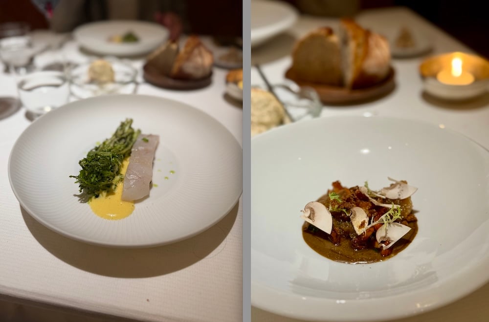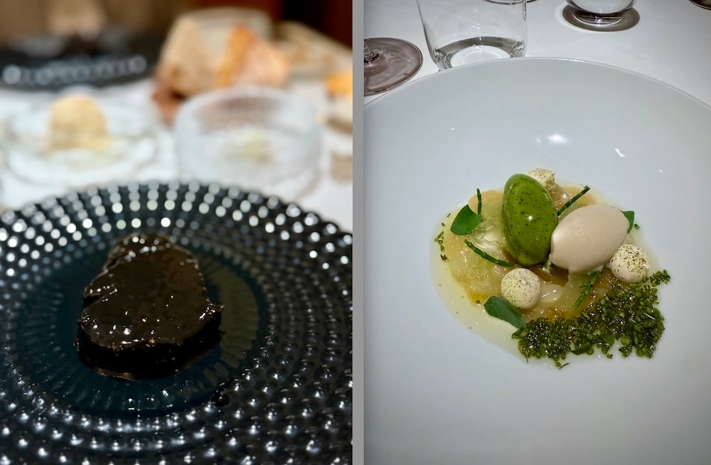 Cinq étapes, raffinées et parfaitement maîtrisées, où l’on retrouve le best-seller du chef : le bœuf au charbon, lard de seiche, d’une tendreté indécente, en accord terre/mer impeccable. Et ce lieu jaune, d’une rare délicatesse, qui se booste d’une frisée grillée à l’amertume assumée.