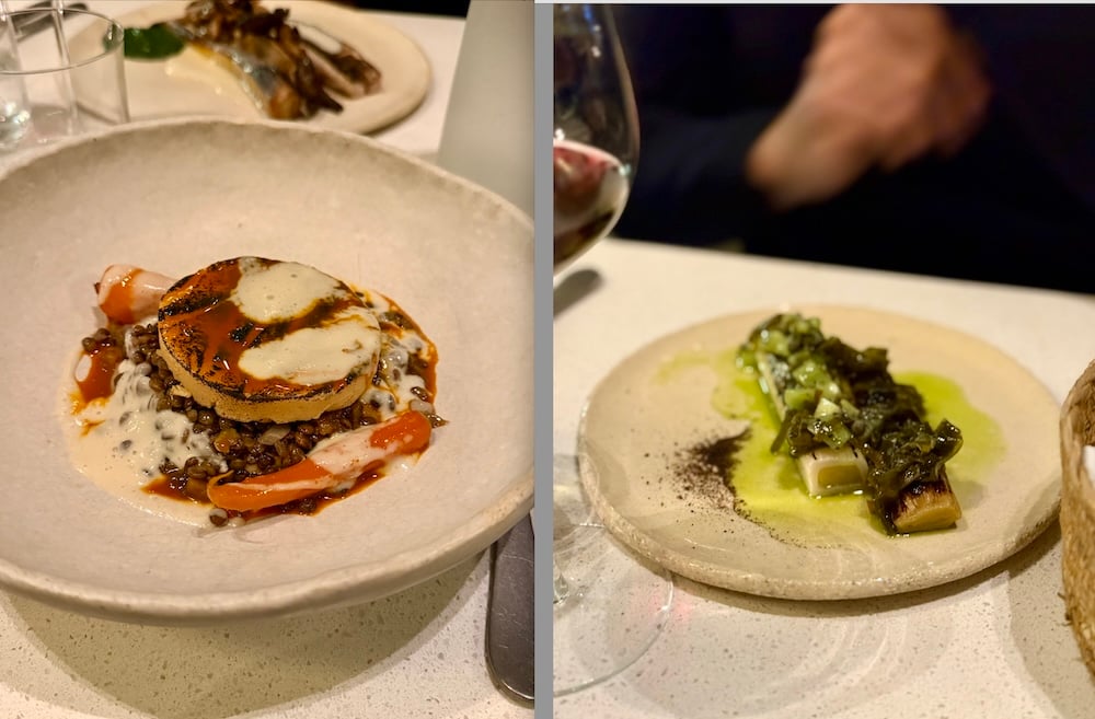Ouvert dans le 14ème, où la cuisine d’auteur n’est pas légion, il faut ce soir-là composer avec la neige, les livraisons annulées, et malgré tout pas mal de couverts pour un 6 janvier. Ça s’agite en cuisine, et le chef Alexandre Aziza s’adapte avec ardeur. Un Saint-Joseph, Vin de Vienne 2023, nous fait patienter.