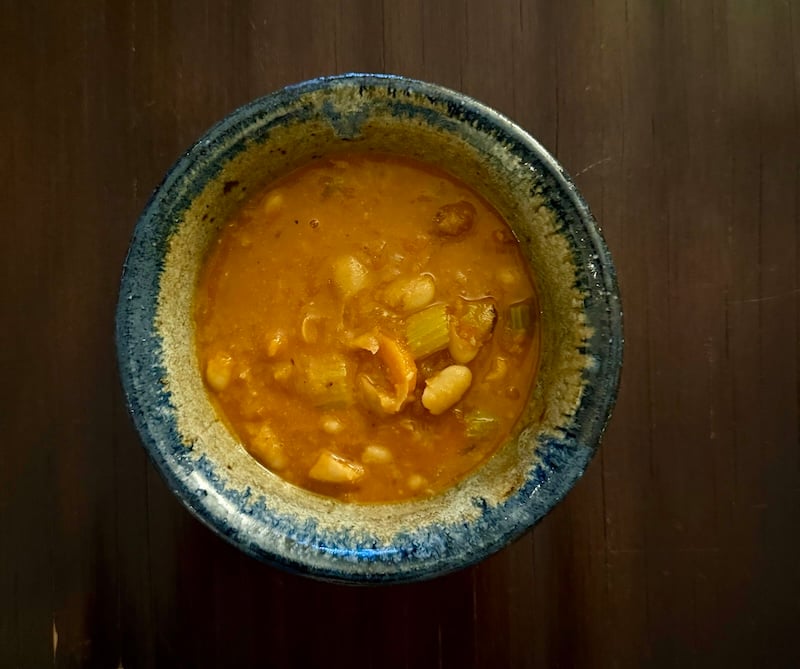 Recouvrir d’eau chaude. Du paprika, de l’origan, une petite cuillère de chili flakes ou de piment d’Espelette, deux-trois feuilles de laurier, sel, poivre, et laisser cuire à moitié couvert pendant une demi-heure.