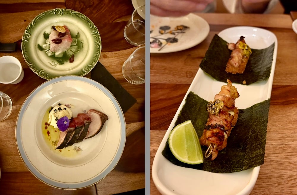 Le menu orientalo-japonais mêle la brick à l’œuf à la ventrèche crue de thon rouge, la bonite au labneh et à la fleur d’oranger, le parguit (cuisse de poulet désossée) à l’algue nori et à la mayo wasabi, et la boulette de thon au caramel de carottes, gel de yuzu. La rencontre détonante entre Betty Zana et Mitsuki Tanaka.
